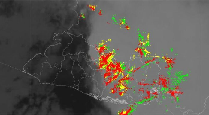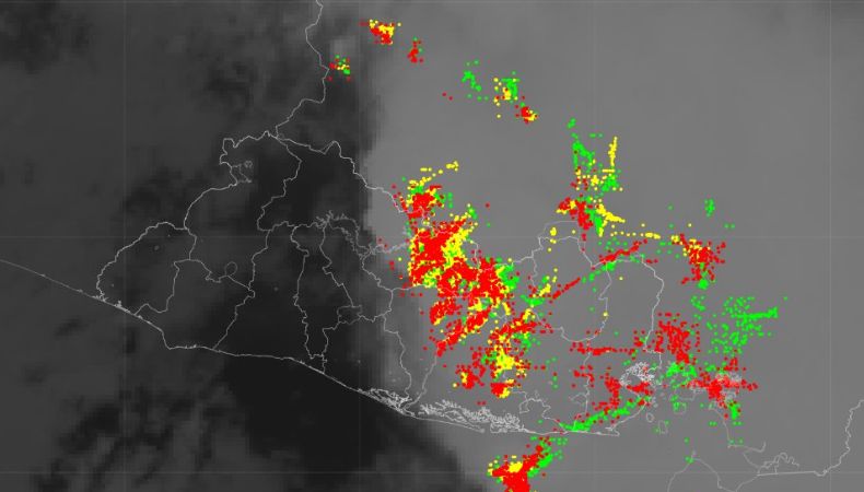 Esta noche se tienen lluvias y tormentas en Cabañas, San Vicente, Usulután, San Miguel, Morazán y La Unión. Se registra abundante actividad eléctrica y ráfagas de viento de hasta 50 km/h, según informa el Ministerio de Medio Ambiente (MARN).