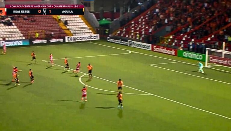 Gracias a uno de los más potentes y bien ubicados disparos de parte de Real Estelí, el duelo contra el Águila se empató, y es que, los salvadoreños en un buen ataque de Santos Ortiz consiguieron el primero del partido.