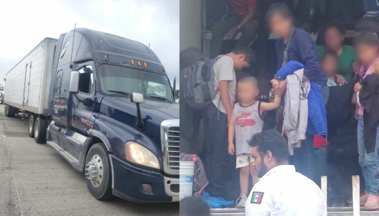 Al ser alertado el conductor del tráiler, kilómetros más adelante dejó abandonada la unidad y con ella bajo seguridad las puertas del cajón donde iban las personas. “El conductor huyó”, dice el comunicado.