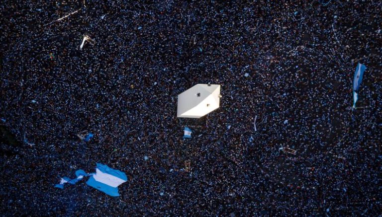 El monumento, ubicado en la Ciudad de Buenos Aires, coexistió junto una masiva cantidad de asistentes entusiasmados por la victoria de Argentina (4-2), en penaltis, sobre Francia. Un choque que provocó diversidad de emociones, pero se terminó por decantar a favor de la felicidad de los sudamericanos, al conseguir el tricampeonato del mundo.
