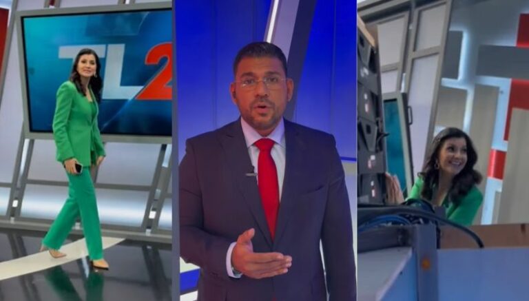 La presentadora de noticias del Informativo TL2, Lourdes Lara, fue sorprendida nuevamente por su compañero Federico Zeledón quien decidió jugarle una broma poco antes de salir al aire.