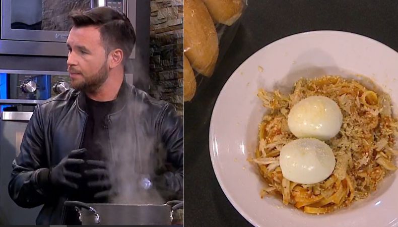 El presentador de televisión, Mario Sibrián agregó su ingenio y creatividad en la cocina de la revista matutina, “Viva la Mañana”, donde realizó una exquisita receta que es muy popular y fácil de realizar entre las familias salvadoreñas, se trata de una pasta en salsa de tomate, pollo y le agregó su toque final, unos huevos duros.