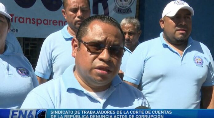 Hoy, representantes del Sindicato de los Trabajadores de la Corte de Cuentas de la República (Sitccor) se concentraron frente al edificio de la institución, a fin de denunciar supuestos actos de corrupción dentro de la institución, como la presunta contratación ilegal de familiares de funcionarios públicos.