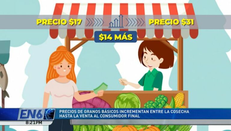 Tras una investigación de la periodista Ingrid Castellanos, de El Noticiero, se reveló que el incremento del precio en la cadena de suministro de granos básicos (maíz y frijol), desde la producción del agricultor, hasta la compra del consumidor final, es de $14.