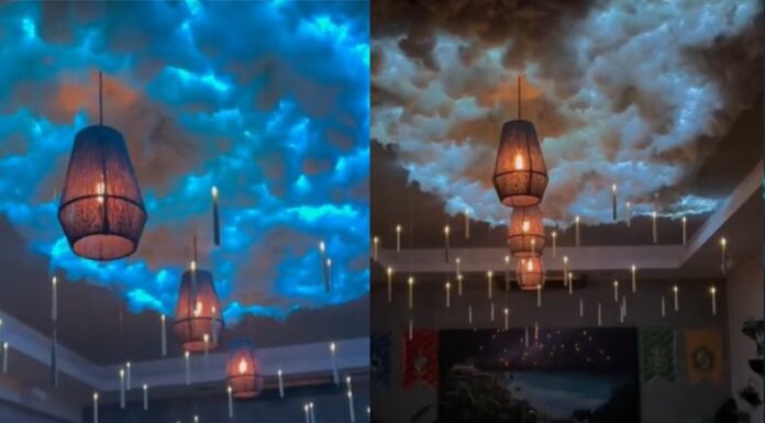 Todo comenzó porque la usuaria de TikTok, deseaba ambientar su comedor al estilo “Hogwarts”, el colegio para jóvenes magos, que cuando los estudiantes se reúnen a degustar sus alimentos en la parte del comedor cuentan con escenarios mágicos en el techo del mismo lugar.