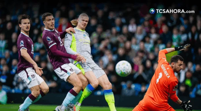 En Turf Moor, el equipo visitante avisó pronto con un disparo de Rayan Cherki y en el 5′ se adelantó en el marcador; los pupilos de Pep Guardiola sacaron el balón desde atrás con calidad y Jérémy Doku metió un pase raso en profundidad para el esprint de un Erling Haaland que, nada más pisar área, picó el balón con un toque que superó al portero.
