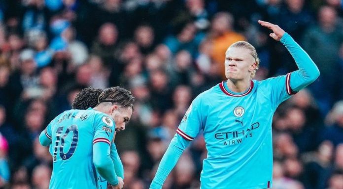 El primer tanto fue por medio de Haaland en el minuto 24; quien aprovechó una gran llegada y que tras recibir un pase de Riyad Mahrez, el instinto goleador del delantero le dictó para perfilarse y sacar un disparo que la mandó a guardar al fondo de la red.