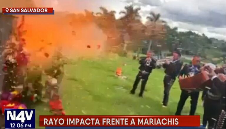 El pasado lunes se viralizó un video, donde se observa cómo un grupo de mariachis se salvaron de ser impactados por un rayo, mientras se encontraban dedicando una serenata a un fallecido. Este caso ocurrió en un cementerio privado del país.