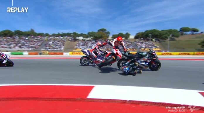 Este domingo 27, comenzó el Moto GP 2023 en la pista de Portimao de Portugal. Francesco Bagnaia se llevó el primer lugar, pero los focos prestaron especial atención al accidente que protagonizó Marc Márquez.
