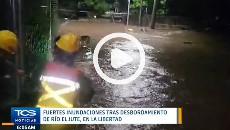El personal de la Fuerza Armada, junto a diferentes equipos de primera respuesta, realizaron evacuaciones de personas que se encontraban en situación de riesgo debido al desbordamiento del río El Jute, en La Libertad.