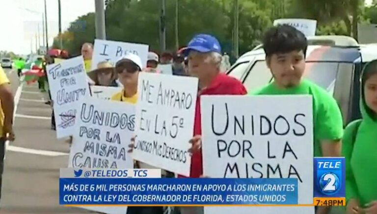En el estado de Florida, Estados Unidos, se llevó a cabo una marcha en la que participaron más de seis mil personas para manifestar su rechazo a la ley anti inmigrante del Gobernador, muchos negocios cerraron sus puertas por un día para unirse al llamado de las personas indocumentadas y permitir que los migrantes trabajen sin ninguna dificultad.