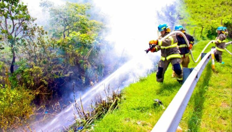 En el desvío hacia el municipio de Victoria, Sensuntepeque, Cabañas, extinguieron un incendio en terreno con abundante maleza seca, hojarasca, arbustos y basura en el sector.