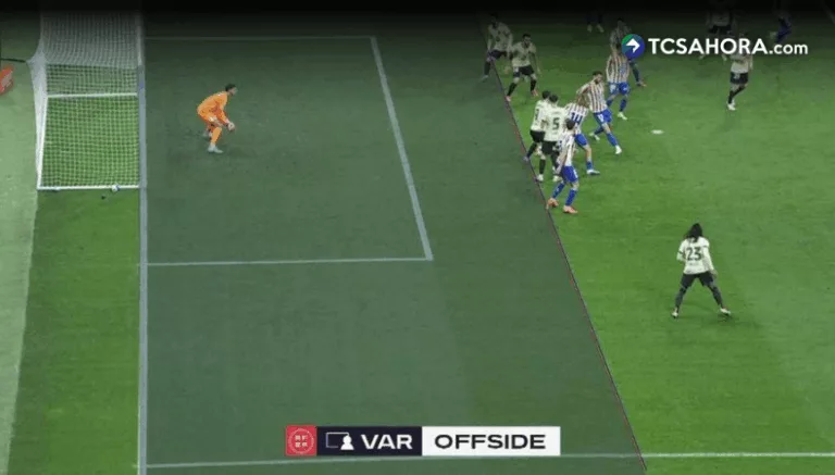 Además, se trazaron líneas manualmente: «Tras intentar que el sistema recalibrarse la modelización, y tras comprobar que no era posible, siguiendo el procedimiento establecido, el equipo VAR procedió a lanzar líneas de fuera de juego manuales para llevar a cabo la toma de decisión definitiva y correcta».