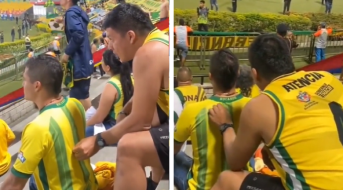 Dos aficionados con camisetas de ambos equipos llamaron la atención de los presentes. No por las camisetas, sino porque uno de ellos era no vidente.