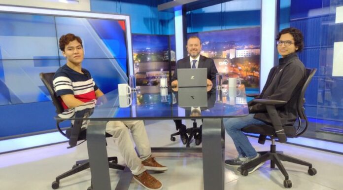 Fernando Domínguez Castaneda, del programa de Jóvenes Talentos de la Universidad de El Salvador (UES), medalla de oro en la Olimpiada de Matemática Asiático-Pacífica, y Luis Edgardo Corea, medalla de oro en la Olimpiada Intermedia de Biología, visitaron el foro de Debate.