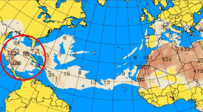 “Se mantiene flujo acelerado -proveniente del este- que transportará un mayor contenido de Polvo del Sahara sobre El Caribe en las siguientes horas, y alcanzará a afectar nuestro país”, dice parte del boletín.