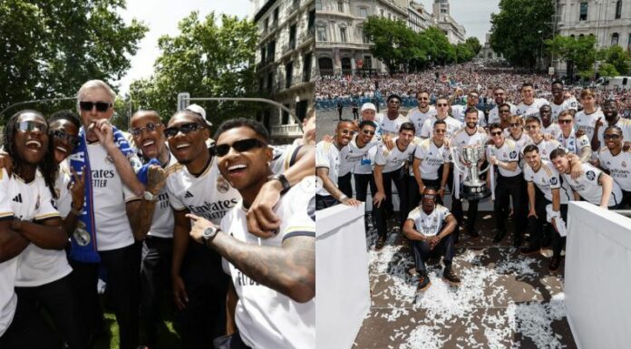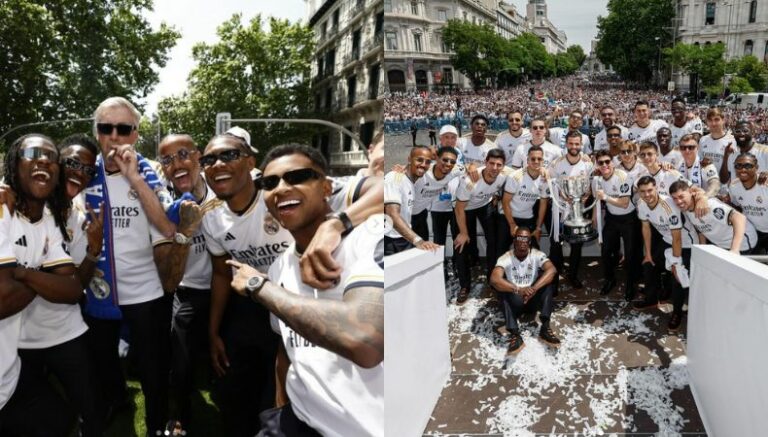 El Real Madrid celebró su coronación de Liga 36 este domingo. El equipo merengue recibió el trofeo en Valvebebas y, tras cumplir actos institucionales con el ayuntamiento de la capital española, realizó el mítico recorrido en caravana hacia la Fuente de Cibeles.