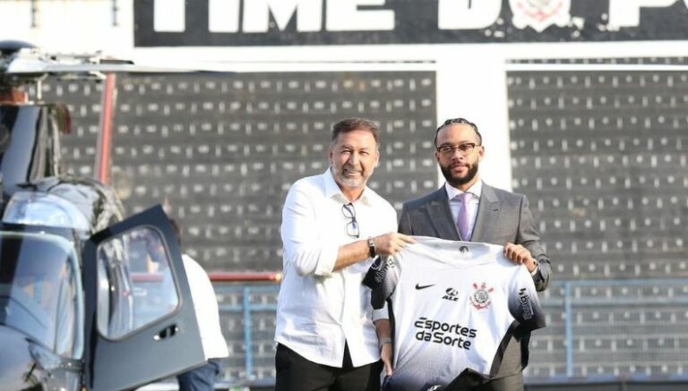 La llegada de Memphis para que sea reconocido en el equipo del Corinthians, fue más que destacada, porque se presentó en helicóptero, con uno de los trajes formales que lo representan, derrochando estilo y elegancia.