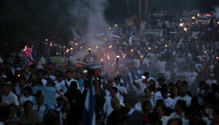 Miles de hondureños se congregaron la noche de ayer en una movilización con antorchas para exigir la renuncia de la presidenta del país, Xiomara Castro, tras la divulgación de un video relacionado con el narcotráfico que involucra a su Gobierno, y la restitución del tratado de extradición con EE.UU.