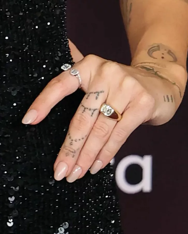 La artista, de 33 años, caminó por la alfombra roja junto al músico, de 27 años, y posaron abrazados antes de ingresar a la proyección. Aunque ambos llegaron con looks elegante, las miradas se concentraron en la joya que Cyrus llevó en su mano izquierda. La pieza, creada a medida por la diseñadora Jacquie Aiche, está elaborada en oro amarillo de 14 quilates y cuenta con un diamante de talla cojín montado sobre una banda gruesa.