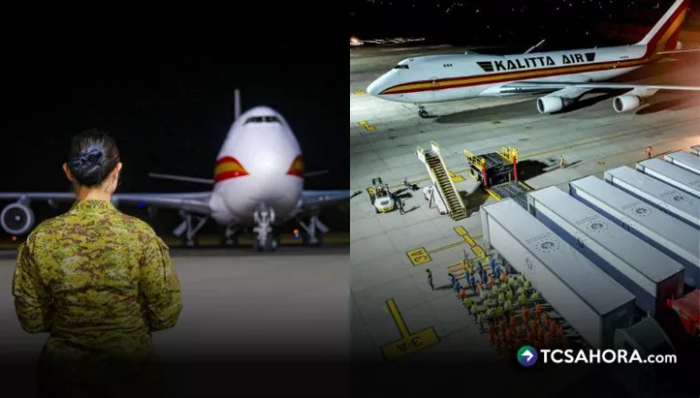 Anoche, la ministra de Educación, Karla Trigueros, recibió en el Aeropuerto Internacional «San Óscar Arnulfo Romero y Galdámez» un cargamento de uniformes escolares destinado a estudiantes del sector público.