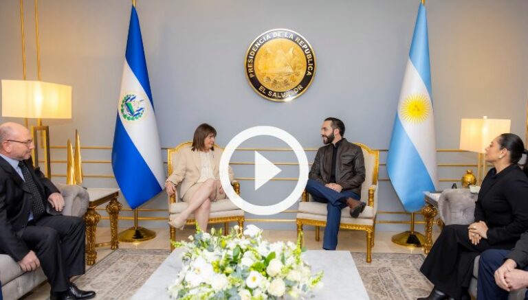 Este día, en su visita en el país, la ministra de Seguridad de Argentina, Patricia Bullrich, se reunió en casa presidencial con el presidente Nayib Bukele. Anteriormente, sostuvo encuentros con el fiscal general Rodolfo Delgado, con quien intercambió experiencias en el combate al crimen organizado y estrategias de seguridad.