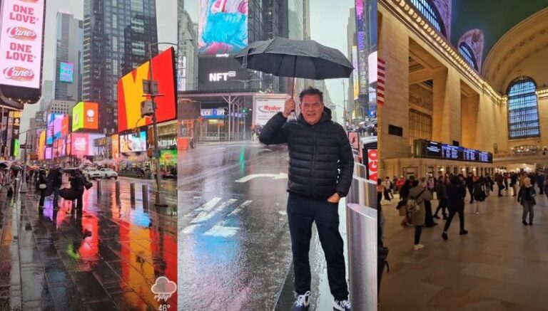 En las fotografías, se puede ver al conductor de “Frente a Frente”, disfrutando de Times Square. Ni la lluvia pudo con él, pues con paraguas y todo, disfrutó de caminar por dichas calles de revista. En sus historias destacó que no era el mejor día en dicho lugar, pero que nada impediría que pasaran unas buenas vacaciones, a pesar de los 8°C en el lugar.