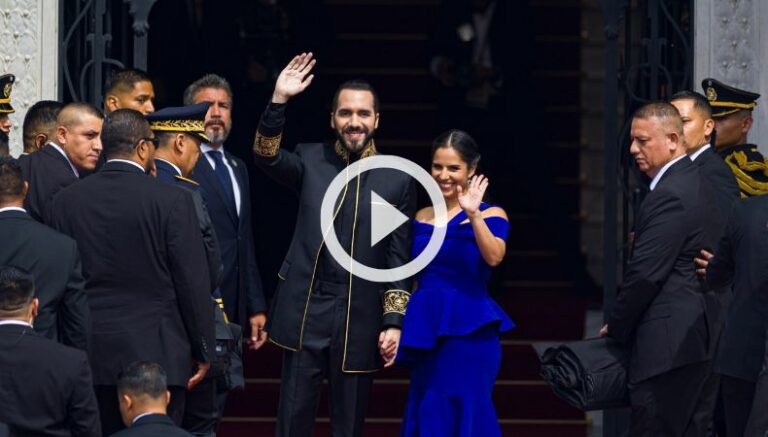 El presidente electo arribó al Palacio Nacional en compañía de su esposa, la primera dama, Gabriela de Bukele. Juntos, se dirigieron hacia las instalaciones para dar comienzo a la ceremonia oficial que marca el inicio de su segundo mandato.