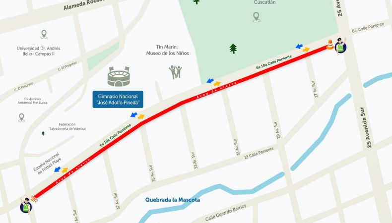 A través de la cuenta oficial de X (Twitter) del MOPT, anunció que se mantendrá un carril restringido en la 6-10 calle Poniente, en sentido hacia la 25 Avenida Sur, debido a trabajos de instalación de cableado subterráneo.