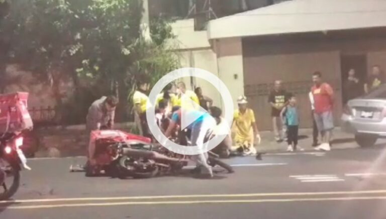 Un motociclista que trabaja en el área de entrega a domicilio de comida sufrió un accidente en las cercanías del redondel Masferrer, en San Salvador, en dirección hacia la avenida Jerusalén. No se conoce con exactitud las circunstancias que llevaron a percance.