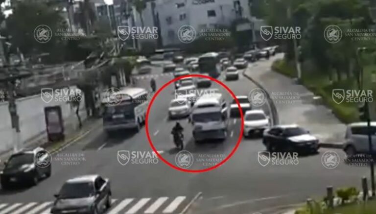 Otro hecho en particular ocurrió el día martes, donde también las cámaras de videovigilancia de Smart City captaron el momento en que una mujer fue atropellada por motociclista sobre la carretera al Puerto de La Libertad, en sentido a San Salvador.