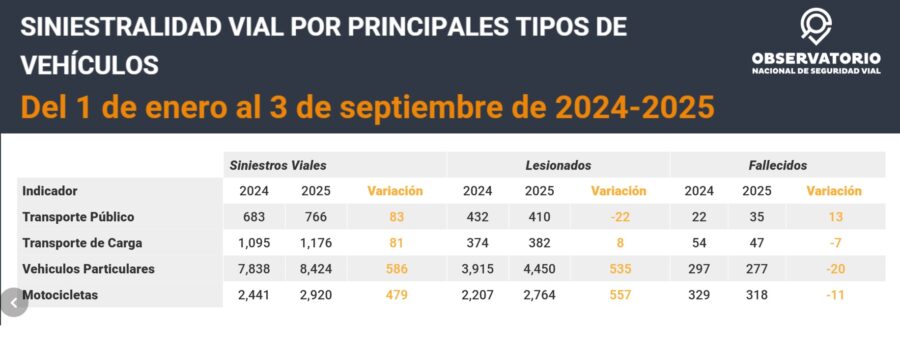 Los vehículos particulares encabezan la lista de accidentes de tránsito en 2025 con 8,424 siniestros viales, lo que representa un aumento de 586 casos en comparación con 2024. Además, dejaron 4,450 lesionados y 277 fallecidos, según el balance oficial del Observatorio Nacional de Seguridad Vial (Onasevi).