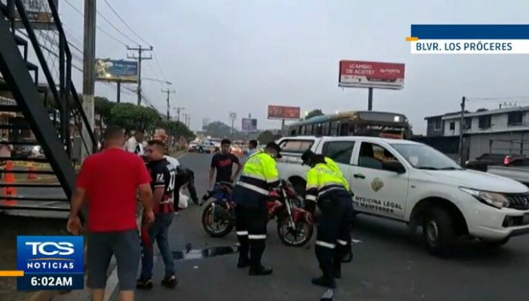 En horas de la madrugada este día 9 de junio, elementos de la Policía Nacional Civil (PNC), informaron un accidente de tránsito donde un motociclista falleció. El percance ocurrió sobre el bulevar Los Próceres, en las cercanías del monumento Hermano Lejano, San Salvador.