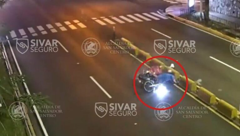 Las cámaras de videovigilancia de Sivar Seguro, captaron el momento en que un motociclista, sufrió un accidente de tránsito. Sin embargo, posiblemente la víctima se durmió mientras circulaba por el Paseo General Escalón, San Salvador.