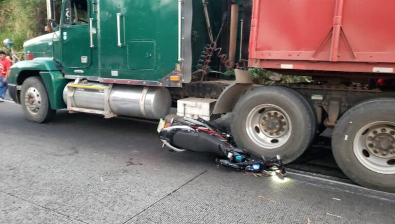 De acuerdo con el informe de las autoridades, una rastra chocó contra un árbol caído, por lo que el motociclista intentó evadir la rastra al realizar una maniobra que lo dejó debajo de la rastra.