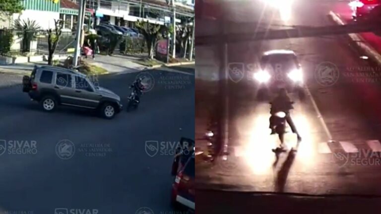 Ayer, dos motociclistas formaron parte de las estadísticas de accidentes de tránsito, ya que dos percances fueron captados captado por las cámaras de vigilancia de sistema de Sívar Seguro, de la Alcaldía de San Salvador Centro, en diferentes puntos de la capital.