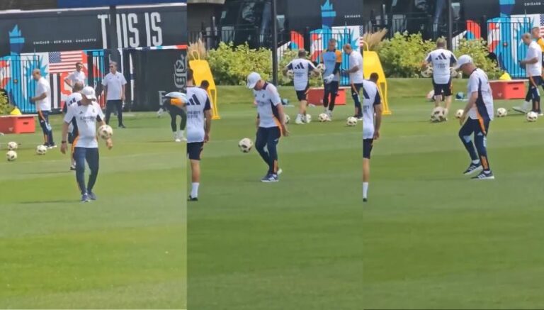 Carlo Ancelotti se ha llevado las miradas en la primera jornada de entrenamiento del Real Madrid durante el tour por Estados Unidos. El entrenador italiano realizó gestos técnicos que deslumbraron a más de alguno, practicando técnicas para evitar que el balón cayera al suelo.