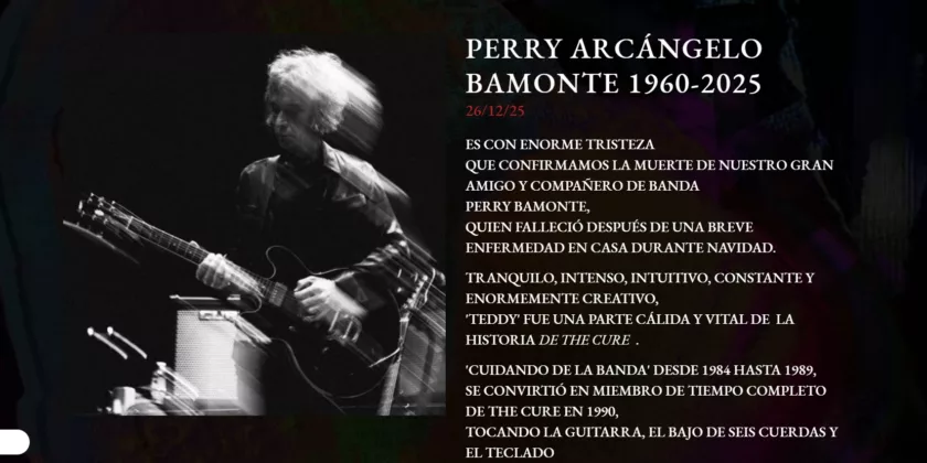 Perry Archangelo Bamonte, guitarrista y tecladista de la banda británica, murió a los 65 años en su casa, durante la Navidad de 2025, luego de una breve enfermedad. La noticia fue confirmada por el propio grupo a través de un comunicado firmado por Robert Smith y publicado en su página web.