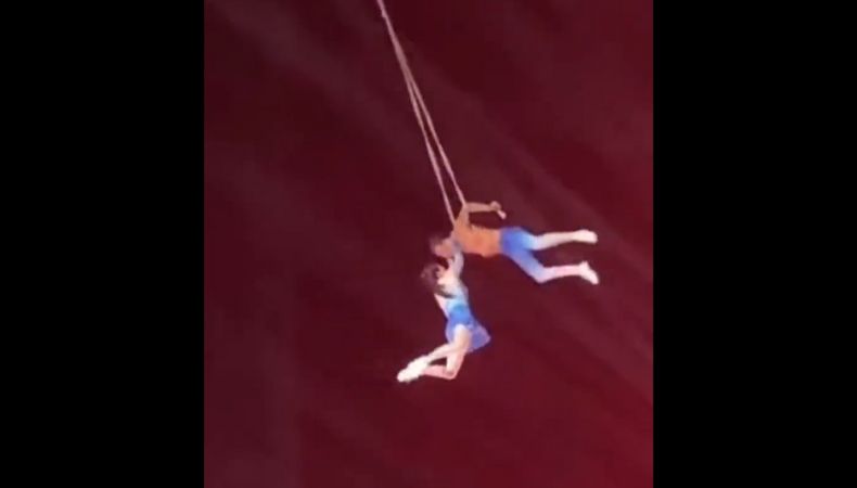 Mientras se balanceaban en el aire, la mujer rodeó con sus brazos la cabeza de su marido y se agarró de él durante un acto de transición. Pero perdió al sujetarse, y se precipitó al duro escenario entre los gritos del público. Su marido intentó atraparla con las piernas, pero no lo consiguió, según se observan las imágenes.