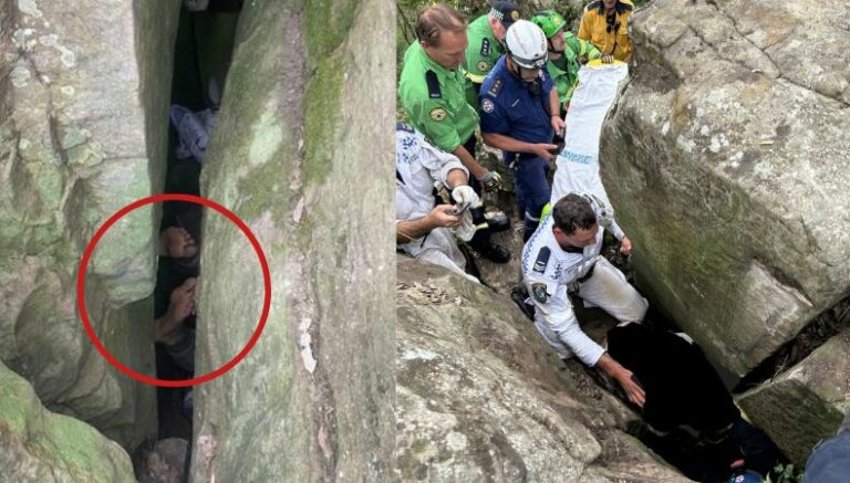 A través de una serie de fotografías, se evidenció la curiosa y angustiante situación que vivió una mujer en Australia, tras caer entre un espacio de dos rocas.
