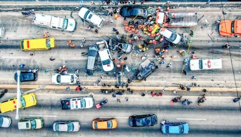 Múltiple accidente de tránsito en el inicio del bulevar Los Próceres y el final del bulevar Monseñor Romero. Al menos 35 vehículos se vieron involucrados, donde se reportan varias personas lesionadas.