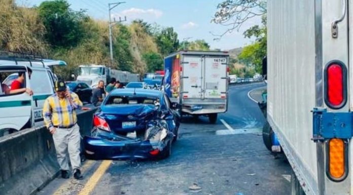 Esta tarde la Policía Nacional Civil (PNC), informó sobre un múltiple accidente en el kilómetro 21 de la carretera de Oro, en dirección hacia Apopa, donde dos personas salieron lesionadas, una de las conductoras sufrió una crisis nerviosa tras el percance. El paso vehicular permaneció cerrado por varias horas.