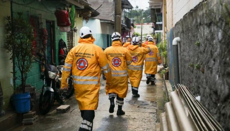 En la comunidad El Granjero, San Salvador, equipos de emergencia realizan evacuaciones necesarias en la zona.
