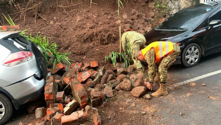 En horas de la mañana de este día, 26 de septiembre, el personal de la Fuerza Armada informó que se encuentran trabajando en la remoción de escombros, tras el colapso del muro de una vivienda ubicada en el barrio San Antonio, Sensuntepeque, Cabañas.