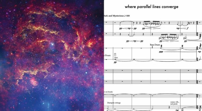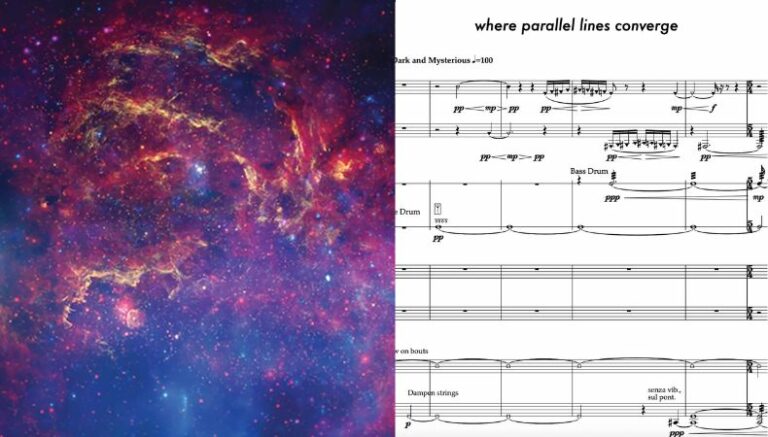 Este proyecto piloto se centra en una pequeña región en el corazón de la Vía Láctea, donde reside un agujero negro supermasivo. Es así, como datos recopilados por el Observatorio de rayos X Chandra, el Telescopio Espacial Hubble y el Telescopio Espacial Spitzer se traducen en una composición llamada «Donde convergen las líneas paralelas».