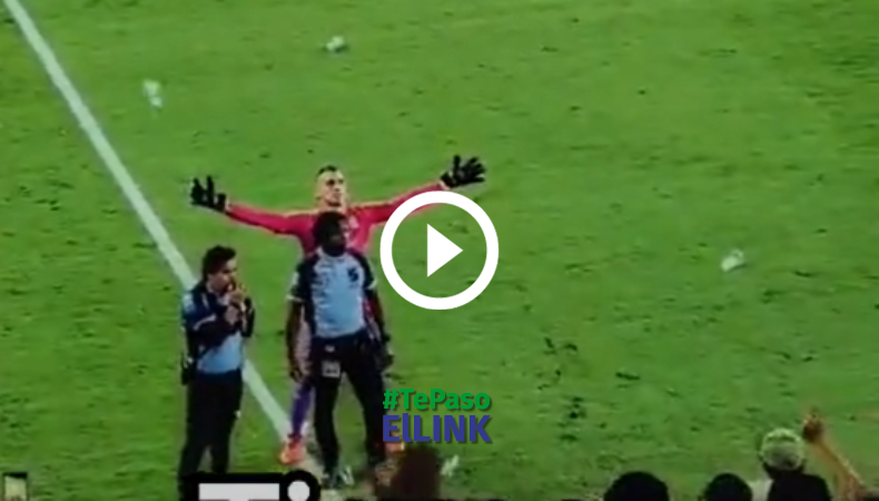 Nahuel Guzmán atrapa botella que le lanzan aficionados