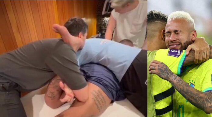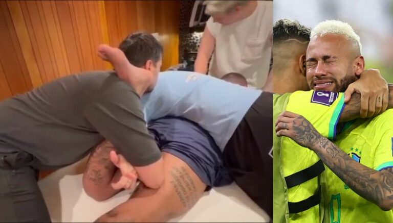 «Ney» no puede evitar las lágrimas y los gritos de dolor durante la fisioterapia, realizada en su rodilla izquierda. De hecho, durante el ejercicio suelta una que otra palabra mal sonante, quejándose del intenso dolor.