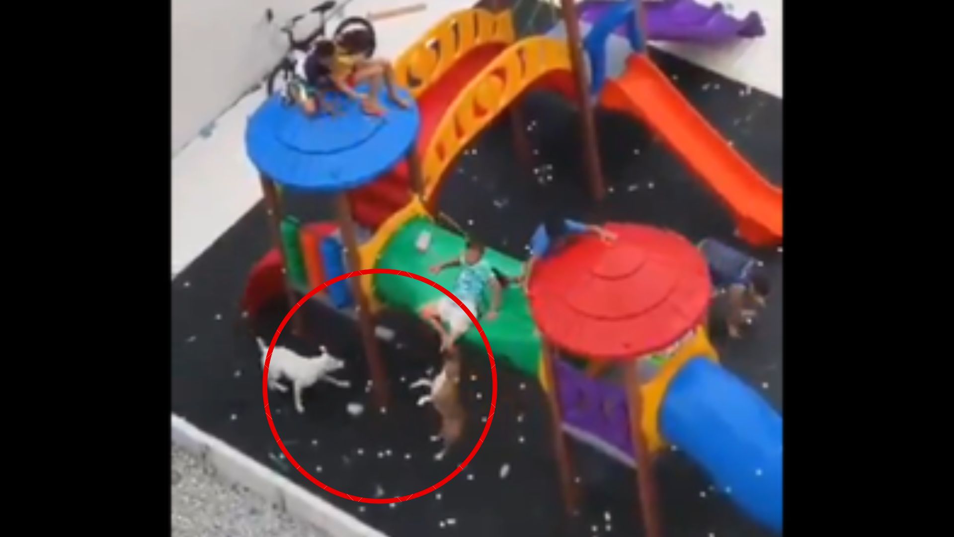 A través de un video quedó registrado el momento en el que varios niños se encontraban jugando cuando de repente los canes llegaron al parque y se subieron para atacar a los menores. A continuación le mostramos el video que contiene imágenes sensibles, por lo que, le sugerimos discreción.