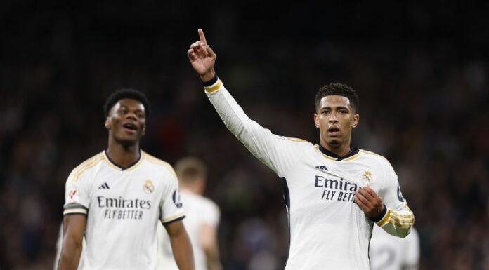 Jude Bellingham alzó sus brazos este sábado en el ‘Bernabéu’, celebrando su doblete con la camiseta merengue durante el partido entre Real Madrid y Girona. Otra exhibición más del joven mediocampista, que no conoce límites y ya igualó la marca de David Beckham como máximo goleador inglés en el equipo blanco, ambos con 20, con 126 encuentros menos que el galáctico.