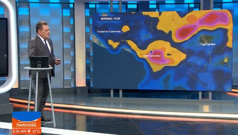 En primer lugar, enfatizó que para este día continuará el abundante calor y poca nubosidad en horas del mediodía. Sin embargo, a partir de horas de la tarde noche, comenzarán las lluvias, iniciando a lo largo de la cordillera volcánica (zona norte) y, poco a poco, llegarán a todo el territorio del país.